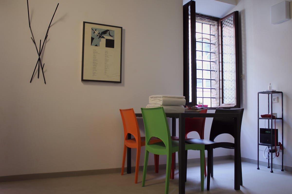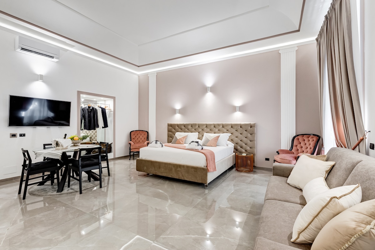 On the top floor of an old Palazzo in the heart of Ancient Rome, Atticus luxury is ideal for couples, singles, or friends. This elegant Studio exceeds all amenities you'd expect from a 5 stars hotel: welcomes you with Prosecco, Breakfast stored items, and Salvatore Ferragamo toiletries. Comfort, Elegance and Privacy for an amazing staying few minutes walk to the Coliseum & the Trajan Forum. Romance also in a glass of wine on the balcony overseeing the city centre and the Roman Forum on its side.