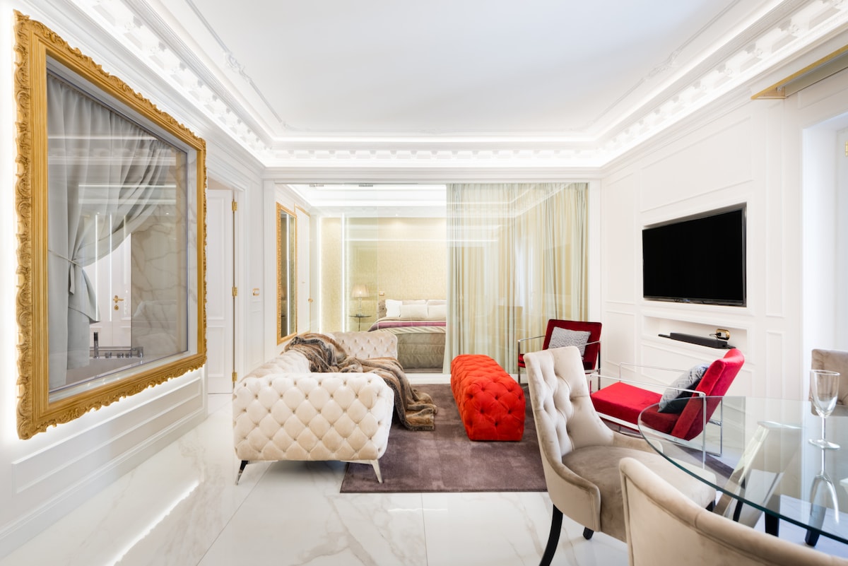 Nel cuore di Roma, lussuoso appartamento di 75 mq, ristrutturato, con due finestre su Via Frattina che offrono scorci su Roma Antica. Nel cuore di Roma, a pochi passi da Via Condotti, Piazza di Spagna e Fontana di Trevi. Metro “Spagna” a 100 mt. Ristoranti e supermercati vicini. Dotato di Smart TV e aria condizionata. Sullo stesso piano, disponibile anche THE BREAK PIAZZA DI SPAGNA – MAISON DELUXE, altro appartamento di 75 mq. Cosi potremo ospitare gruppi fino a 8 persone