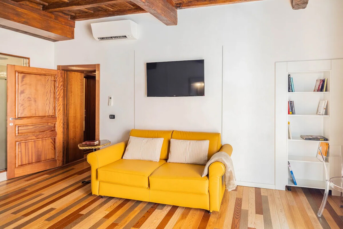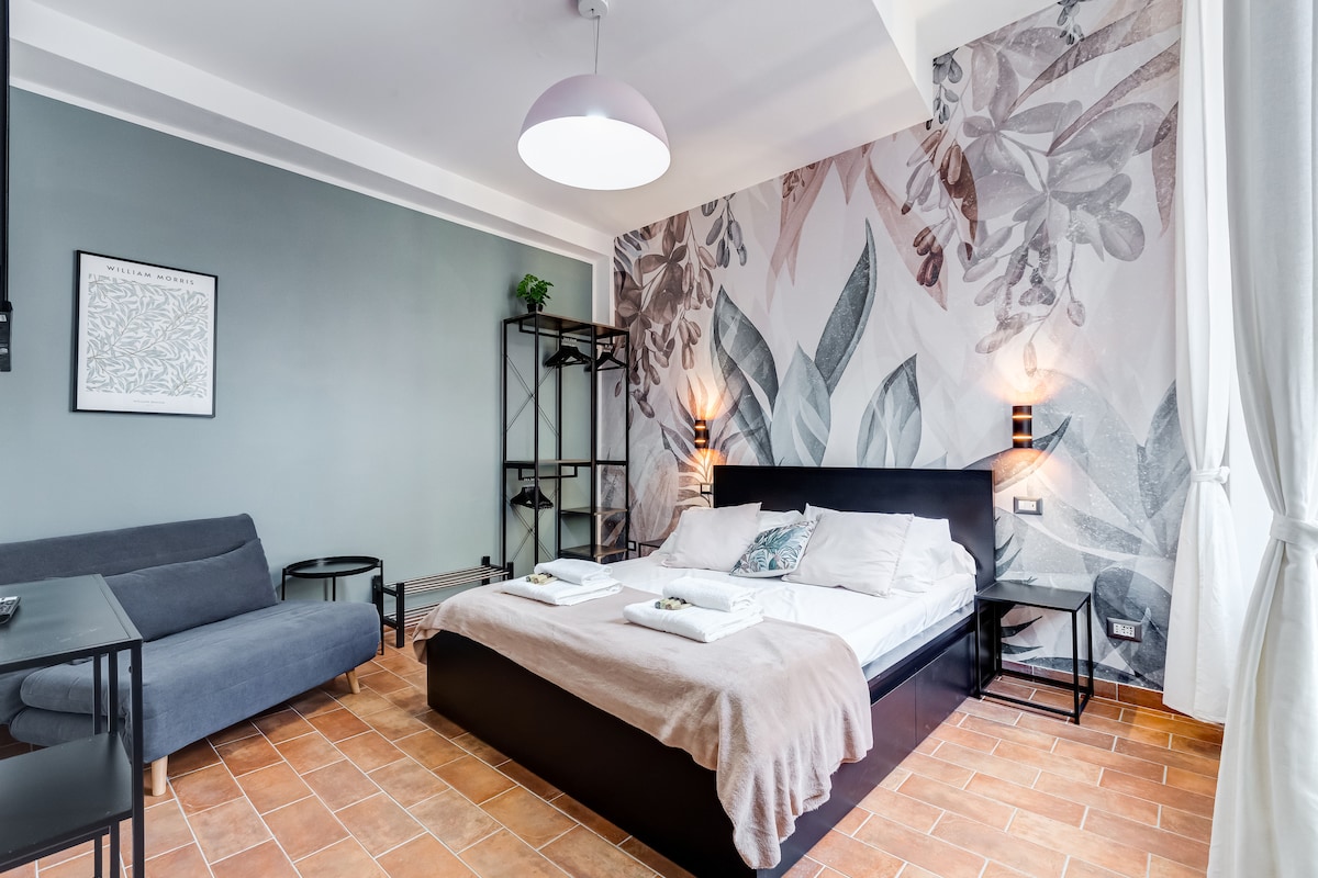 Splendid bright loft, composed of entrance, kitchen, bedroom and bathroom. The double bed upon request could be transformed in two single beds. The apartment is very close to Spanish Steps and it is well located place for exploring on foot the city's sights, including the Trevi Fountain, the Colosseum and Roman Forum; perfect also for enjoying the most exclusive shopping streets: Via dei Condotti, Via Frattina, Via del Corso, La Rinascente and much more.