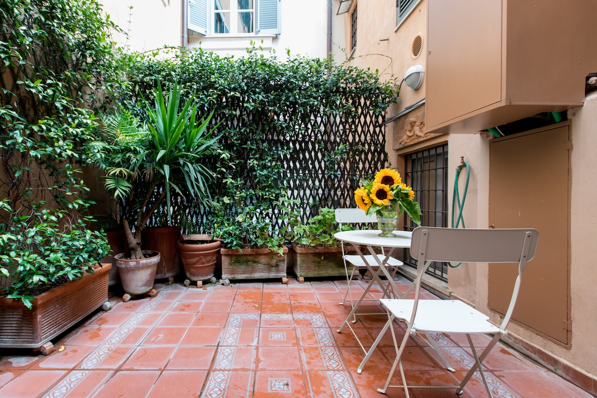 A lovely, quiet, airy apartment with a private courtyard overlooking a private garden on the Spanish Steps, in the very heart of the most beautiful part of Rome . We have made it beautiful, comfortable and luxurious as we would like it for ourselves, and you will feel this the moment you walk in. The location is unbeatable: the Spanish Steps, Via Condotti and all the shopping streets, yet also metres away from the underground, connecting directly with the train that takes to Fiumicino airport.