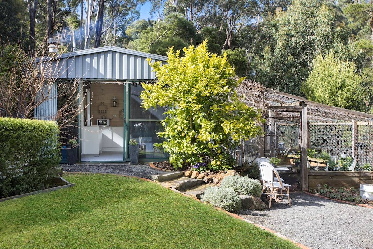 Nestled amongst the trees, adjacent to the Wombat State Forest, "Le Shed" is unique & relaxing, perfect for singles or a couple. Ideally located just a short walk into the tiny town of Blackwood offering the country style hotel, with great pub grub, and the PO offers good coffee & light lunches in the garden. Local attractions include B'wood Ridge Nursery offering amazing food & wine, & Garden of St Erth a short bush walk away. Trentham,10 mins away, Daylesford/Kyneton 25 mins. Pet Friendly