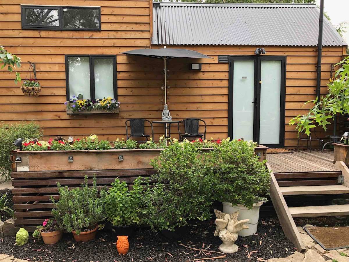 Ruby is a clean, comfortable tiny house. A little oasis in a beautiful garden. Great for a cosy escape on your own or with your favorite person and/or pet. Located only 10 mins walk from the city centre and everything that Ballarat has to offer, including an array of pubs, shops and restaurants. You can walk to Sovereign Hill in 15 minutes. The house is adorable ( yes, I’m biased) and I know you’ll love staying here. Come and enjoy a stay in Ruby. Check in any time from 3pm until 10pm.