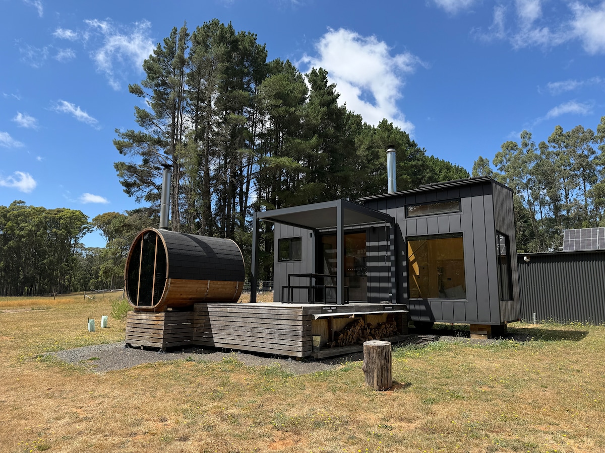 Situated in "cool country" Trentham, the Chef’s Shed was originally built in 1860, and has been lovingly transformed into a cosy, spacious and unique place to stay. It has quirky living spaces, including a loft, and wide, stunning views over the land around, even from the private sauna which can be used for a modest fee. From here you can explore the region. We are surrounded by nature, and a few minutes drive from historic Trentham with cafes, pubs, walking tracks and a lot of history.