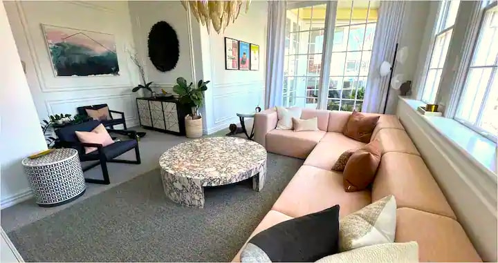 宽敞时尚的客厅,位于奥克赖德尼区,靠近奥克兰中央商务区和高架桥