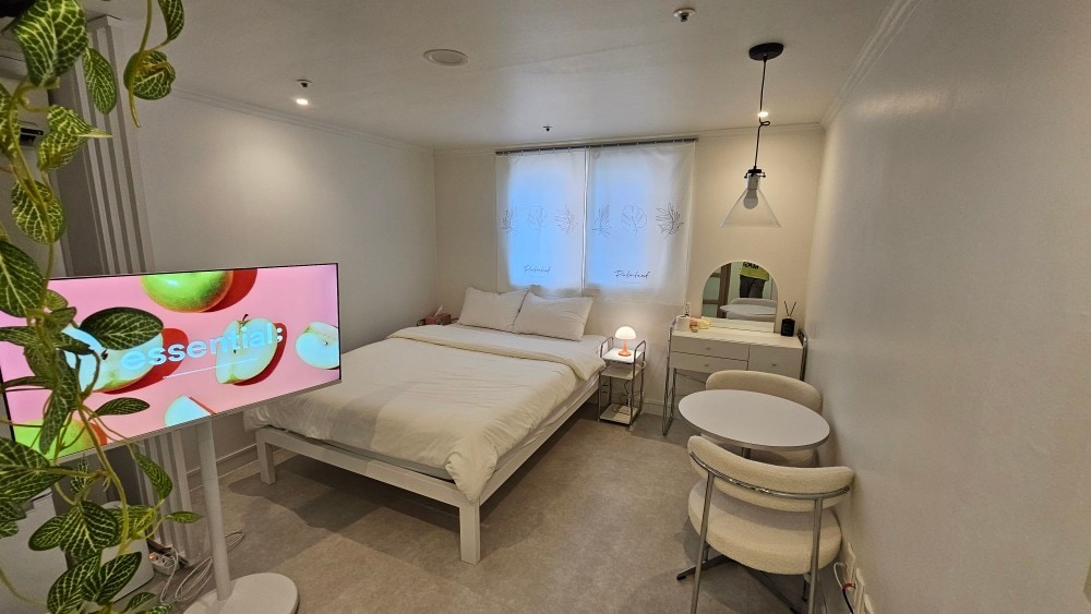 숙소 설명 ✅꼭 필독✅해 주시고 이용해 주세요!! 🛏"잠자리"라는 기본에 가장 충실하려고 "노력"한 공간입니다! ✅숙소 옵션✅ -삼성 스마트 TV -초고속 wifi지원 -삼성 시스템 에어컨 -삼성 스타일러 -드럼 세탁기 -일리머신기 -전기 포트기 ✅숙소 주방 옵셔✅ -인덕션 2구 -머그잔/맥주잔 -앞 접시 / 중 접시 -냄비 1개 -조리도구(국자,집개,칼,가위) -수저셋트 (2인 인준) 🙏저희 숙소는 간단한 조리(라면정도) 가능 하세여 참고해 주세여! 후라이팬x ✅화장실/샤워실 옵션✅ -핸드워시 -폼클랜징 , 클랜징 오일 -샴프/컨디셔너/바디워시 -바디로션 -화장솜 , 면봉 , 생리대 -헤어드라이기, 고데기