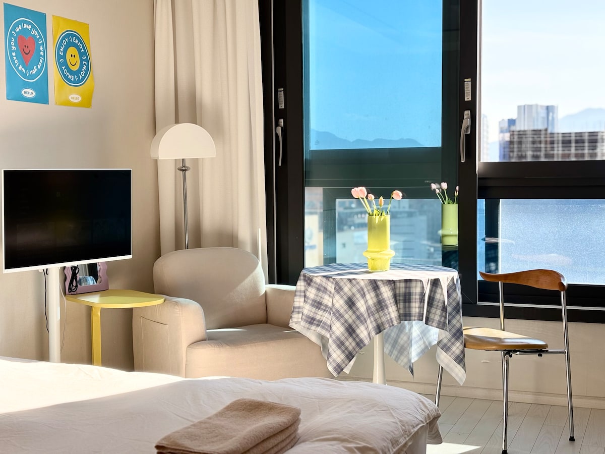 숙소 설명 ✅꼭 필독✅해 주시고 이용해 주세요!! ❤️"잠자리"라는 기본에 가장 충실하려고 "노력"한 공간입니다! ✅숙소 옵션✅ -삼성 스마트 TV -초고속 wifi지원 -삼성 시스템 에어컨 -삼성 스타일러 -드럼 세탁기 -일리 커피머신기(캡슐제공) -전기 포트기 -전자레인지 ✅숙소 주방 옵션✅ -인덕션 2구 -머그잔/와인잔 -접시 2개 -냄비 1개(중) -조리도구(국자,칼,가위) -수저셋트 저희 숙소는 간단한 조리만(라면) 가능하세용 참고해 주세요! (❌삼겹살,스테이크,국,찌개류,파스타❌) ✅화장실/샤워실 옵션✅ -핸드워시 -칫솔,치약 -폼클렌징, 클렌징 오일 -샴푸/컨디셔너/바디워시 -바디로션 -화장솜,면봉