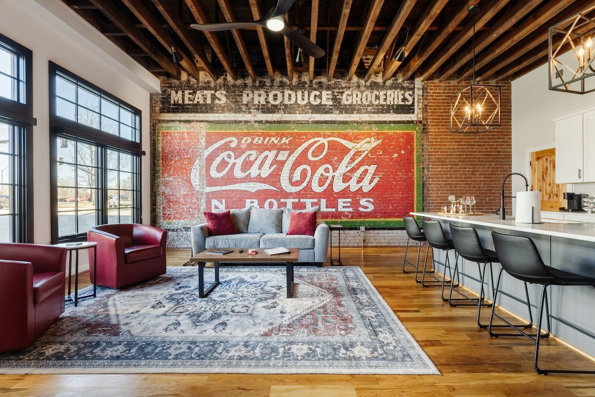 Located across from Morgan Square in Downtown Spartanburg, you'll love the southern charm and shabby chic environment of our 1400 sq ft 2nd floor apartment featuring exposed brick dating over 100 years. Close proximity to downtown dining and shopping including walking distance to Pure Barre headquarters. Nestled between office studios, serene environment for leisure or business stays. Queen bed and sofa. No smoking or pets. (Please note this apartment is on 2nd floor, requiring walking stairs.)