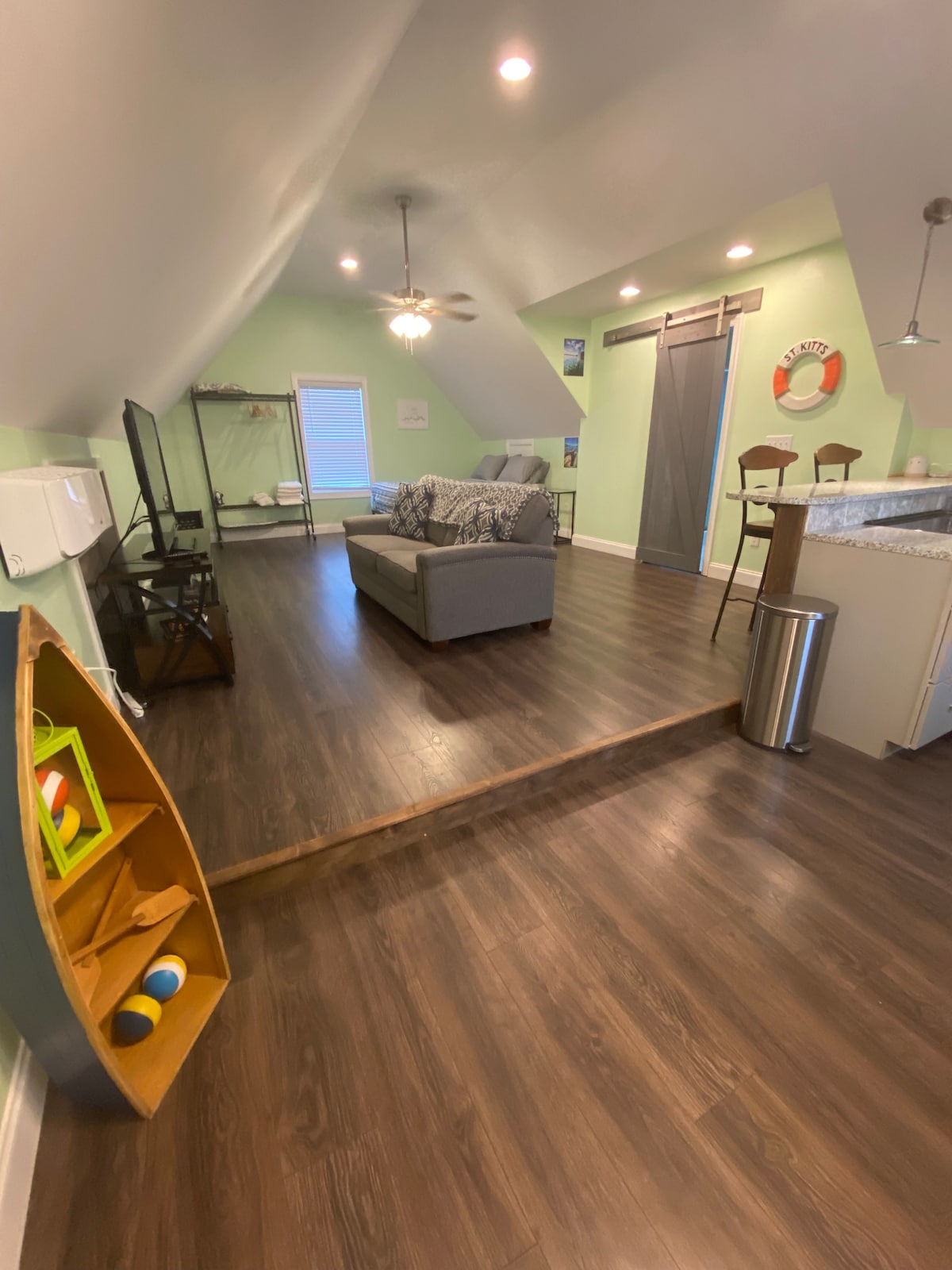 This fully renovated, king-bed guesthouse offers a peaceful, airy stay perfect for parents of college students, couples on a getaway, business travelers, and more. You'll enjoy a full kitchen, stocked coffee bar, spacious bathroom, and stylish living room with RokuTV. Parking is onsite with a private driveway and entrance. This puts you 10-15 minutes from downtown Spartanburg, including Converse, Wofford, and Spartanburg Methodist Colleges, and 20 minutes from USC Upstate.
