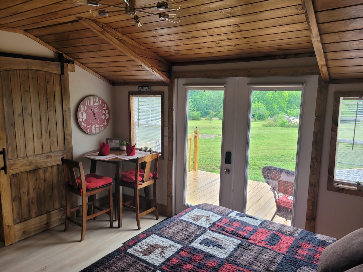 This is a tree house like bungalow in beautiful Campobello SC. Enjoy a peaceful, rural retreat that is central to Upstate SC and Western NC. We are about 5 miles to downtown Landrum SC, 25 minutes to Spartanburg SC, 40 minutes to Greenville SC, 45 minutes to Asheville NC, and about 22 minutes to the Tryon Equestrian Center in NC. Inside the unit, downstairs is the kitchen, dining area, and bathroom, Upstairs in the loft are 4 different beds (Queen, Three Singles) &.a common area.