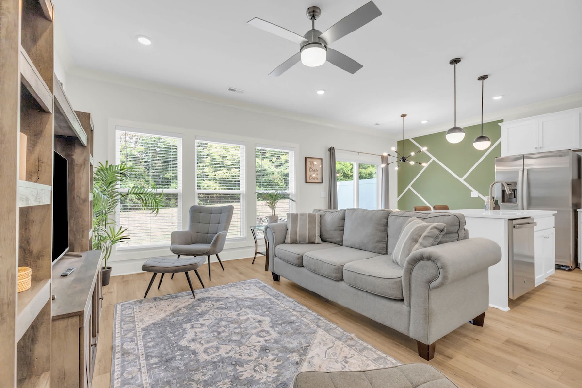 Stay in style at this gorgeous, brand new townhome just 2 miles from downtown Spartanburg! Thoughtfully designed with modern luxury touches and beautiful finishes throughout. The open, fully equipped kitchen with gas range is perfect for cooking, gathering, and entertaining. With 3 spacious bedrooms, 2 king beds, and 2 full beds, it comfortably sleeps up to 10 guests. You’ll be close to great shopping, incredible local dining, and the new baseball park — the perfect spot for any getaway!