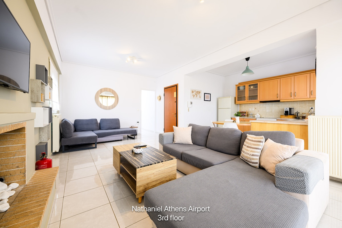A brand new luxurious- sunny apartment with nice view and great location in Spata. It's only 10 minutes drive from El Venizelos international airport and 15 from the port of Rafinas. A perfect place for a family to spend their vacation near Athens or for everyone who doesn't want to spend the night at the airport waiting for the next plane.
