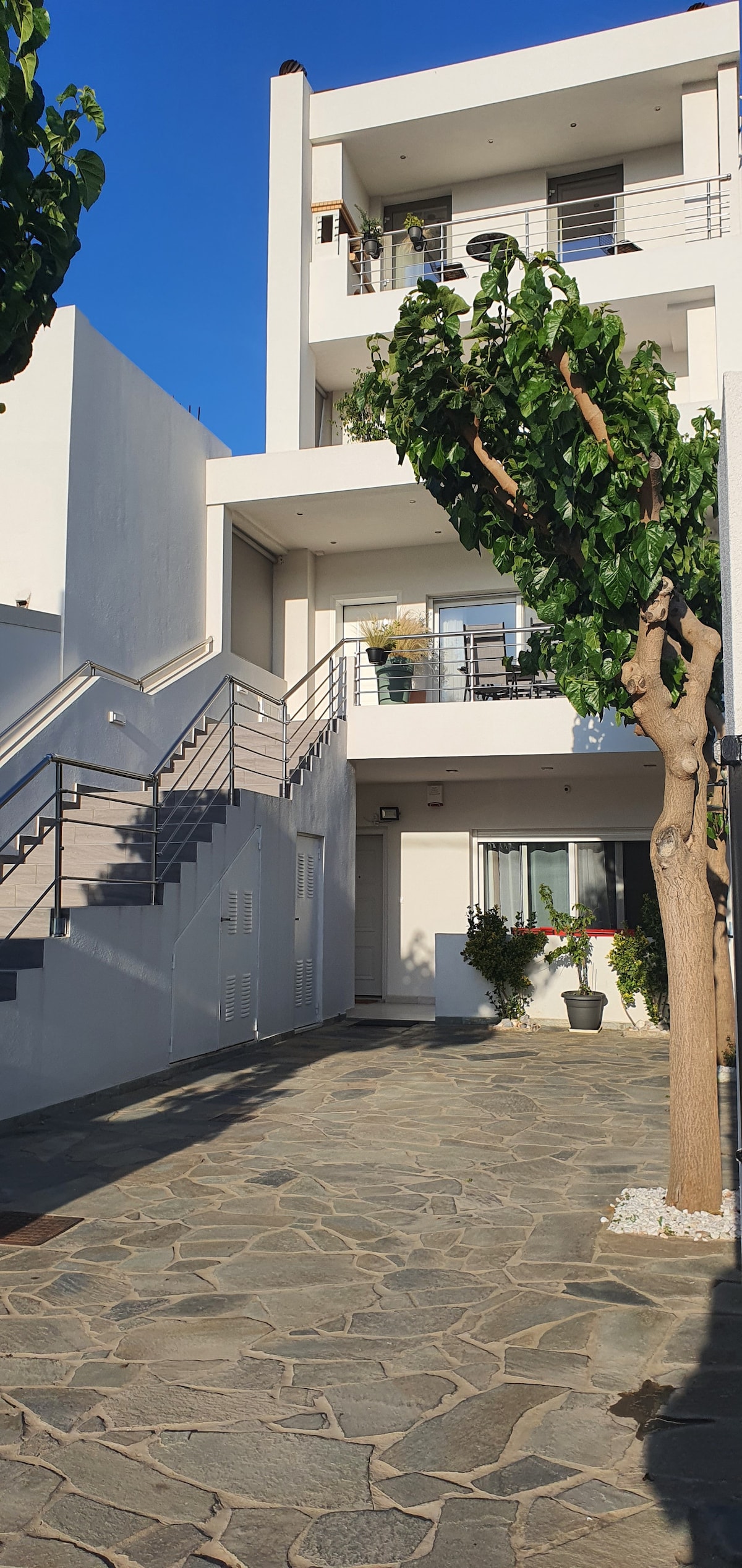 A apartment including 2 bedrooms, a bathroom, and a big living room with a kitchen and a very comftable balcony and courtyard. There is also a free parking. Our house is 10 minutes away from the airoport, 2 minutes away to the supermarket and to the bakery . A 5 minutes walk to Pizza Fun and to Traditional Greek food souvlaki.