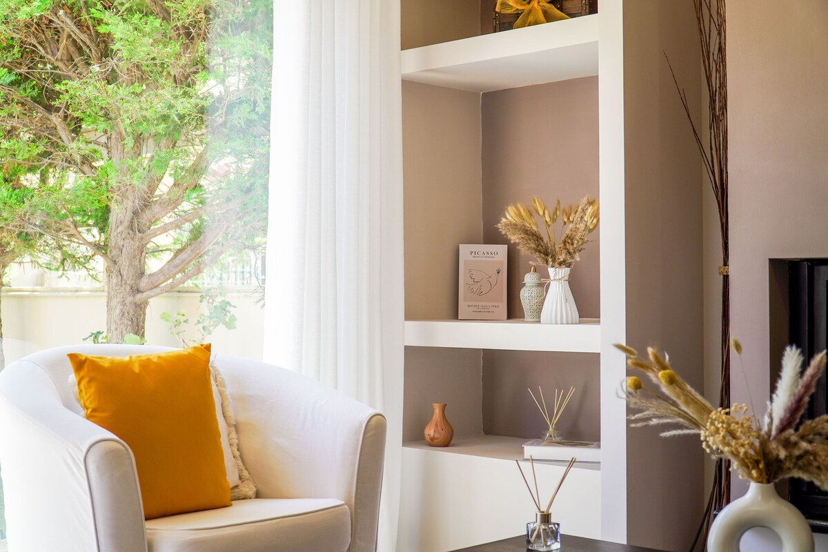 Our newly renovated holiday 45m2 apartment is stylish, minimal yet cozy to make you feel right at home. A haven of white and palest grey, the apartment is filled with natural light throughout the day. Our private 100m2 terrace will give you all the serenity and tranquility you need when on vacation by enjoying the stunning view of Vouliagmeni's Bay. Close to beaches, ski school, tennis court, basketball court, hotels, restaurants, forest, parks, 30' from Athens Centre, 30' from Athens Airport.