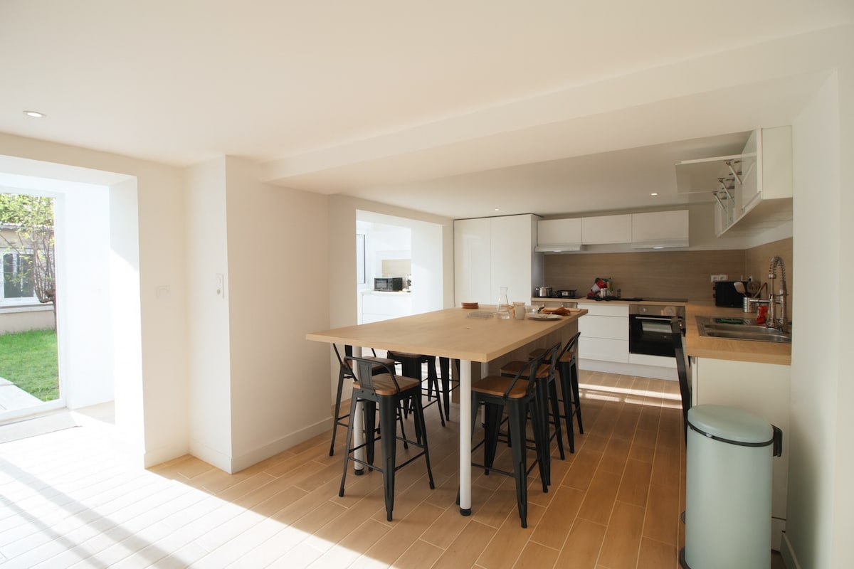 Notre maison de 240 m² offre un niveau de confort introuvable ailleurs en location au Mans : - 9 chambres doubles, chacune avec sa salle de douche privative Personne n’a à partager la salle de bain, même dans un grand groupe ! - Literie de qualité, rangements et vraie intimité dans chaque chambre - Idéal pour groupes mixtes, collaborateurs, amis ou familles recomposées Ce concept permet à chacun de vivre à son rythme, tout en profitant du plaisir d’être ensemble. Jusqu'à 18 personnes possibles