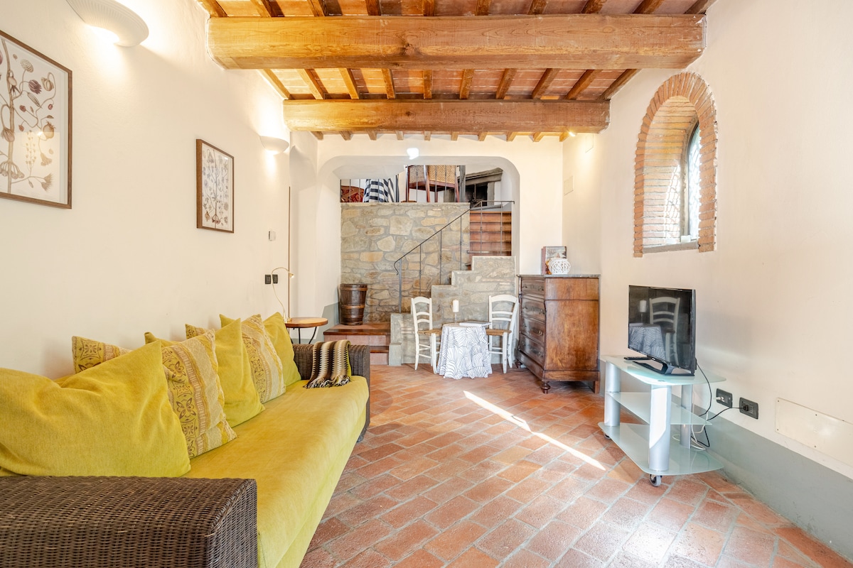 The apartment is part of a typical Tuscan farmhouse immerse in the green countryside. Completely independent, it consists of fully equipped kitchen with fireplace, living room with TV and sofa bed, a bathroom with shower and a double bedroom.
