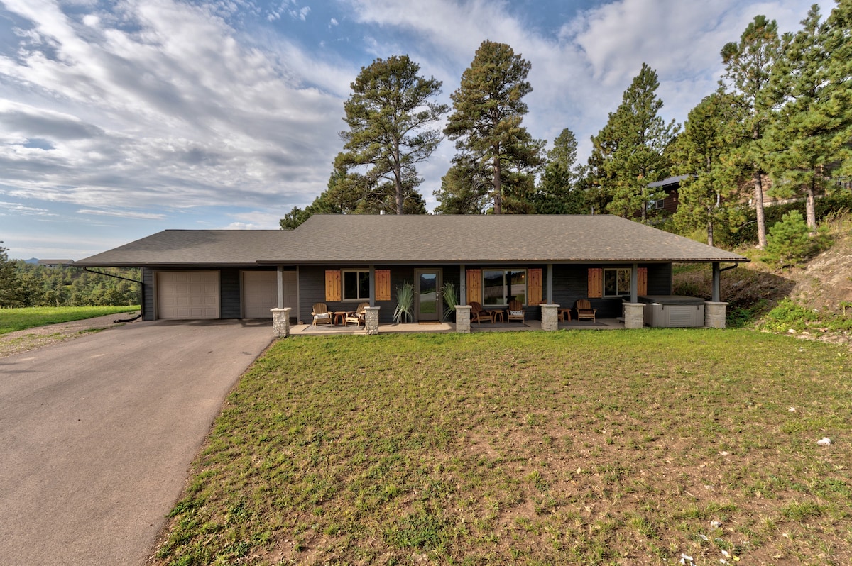 This beautiful large 2 bedroom cabin nestled right outside of Sturgis SD can comfortably accommodate several guests, as it has 2 bedrooms as well as 2 living rooms. One of the living rooms has 2 fold out twin beds. 7 person hot tub! patio furniture as well. This cabin gives you the privacy you need yet the comforts of being 5 mins from a grocery store. Gorgeous views of the Black Hills. Fully furnished home. BBQ grill. We have a few different airbnbs and the cabin is completely private.