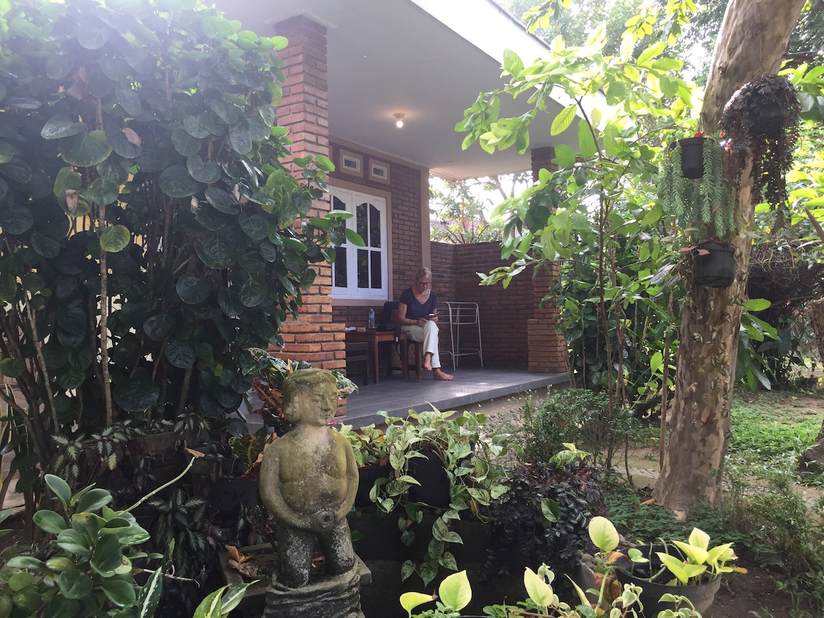 The house known as a 'limasan' is surrounded by a lush tropical garden, 10 km away from the cultural interest and beauty of Yogyakarta . Warm considerate hosts who keep the place immaculate and serve wonderful local dishes in an atmosphere of calm and beauty. The well furnished room is large with two double sized four poster beds, a nice veranda with garden views and plenty of space. An oasis of serenity but within reach of all the sights and activities that make Jogja special.