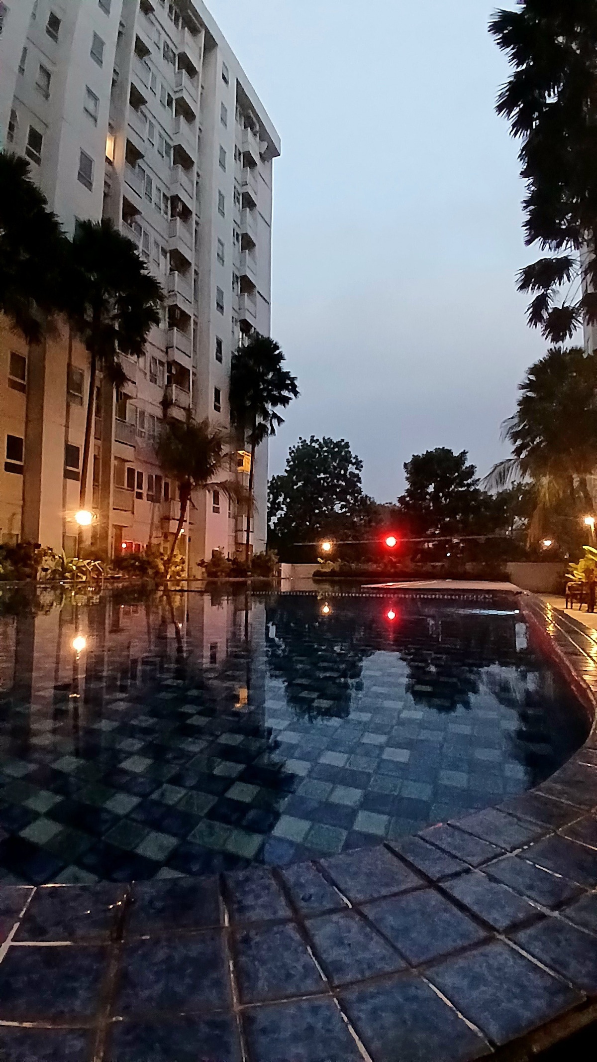 Your home away from home. Uniquely designed and cozy studio apartment for 2 guests + 1 little child. The room equipped with 1 queen size bed, modern bathroom, kitchen with basic cooking equipment, and balcony. Free parking, pool, gym, lobby area with cafe, restaurant, laundry, and mini market. Facilities: - 55 " smart TV - Wifi - AC - hot shower - refrigerator - microwave - electric stove - kettle - kitchen sink - basic cooking equipment - hair dryer - iron Note: - No breakfast
