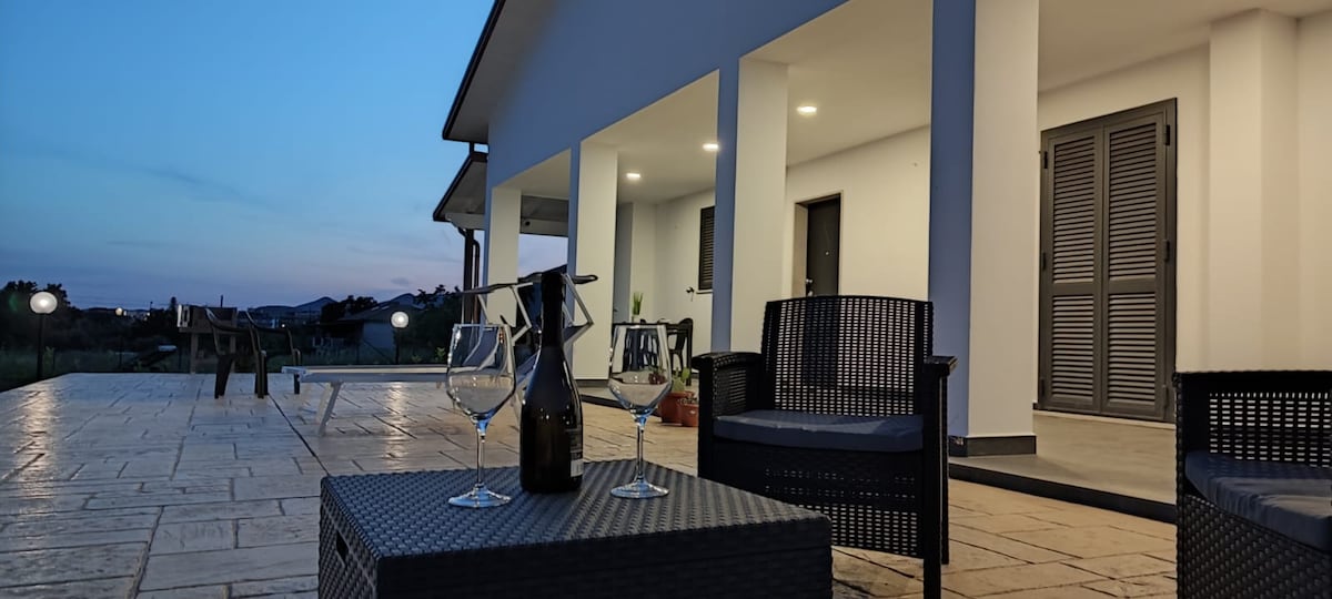 Marilù Dream House, a 800 mt dal mare, in zona tranquillissima, villetta finemente arredata e completa di tutti i comfort. - Adatta a 4/6 persone - Due camere matrimoniali - Due bagni - Due divani letto nella zona giorno - Climatizzazione in tutti gli ambienti - Wi-Fi - Lavatrice, asse e Ferro da stiro - Cucina con piano a induzione e completa di tutti gli elettrodomestici e le stoviglie - 2000 mq di giardino recintato, in parte pavimentato, BBQ, tavoli e sedie - Parcheggio privato.