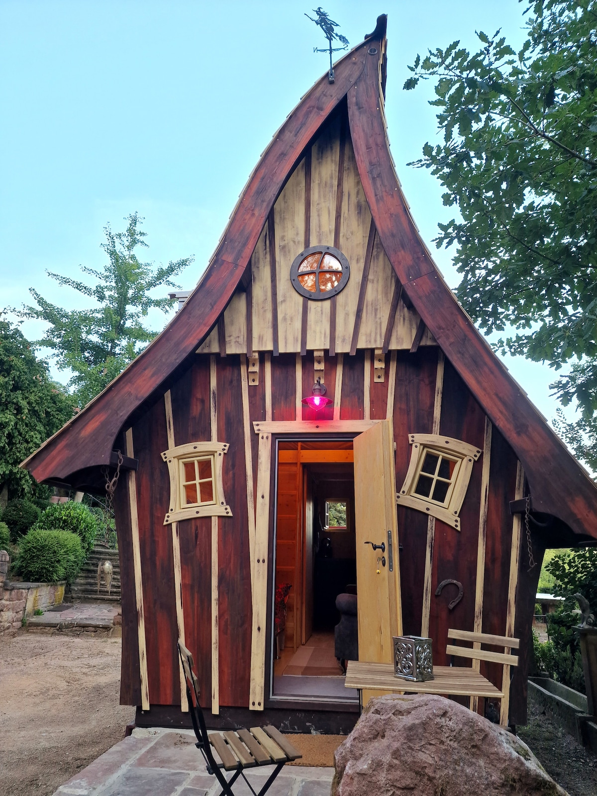 Idyllisches Tiny Häuschen mitten in der Natur, am Rande der Schneewittchen Stadt Lohr am Main. Im Haus, gebaut 2022, befindet sich ein Wohnbereich, eine Küche, ein Badezimmer und ein gemütliches Schlafzimmer im Spitzboden. Die eigene Terrasse mit Blick auf den Spessartwald lädt zum Träumen ein. Der Wanderweg startet direkt vor der Tür. Zweibeiner trifft man hier nur selten an, dafür Vierbeiner. Unser kleiner Zoo besteht aus Hunden, Katzen und Minischweinchen.