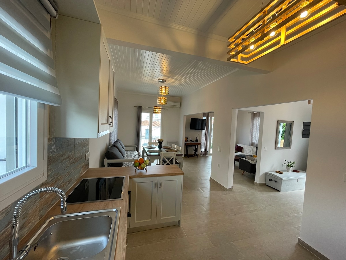 Welcome to your Spetses home! Just a short walk to beaches, coffee shops, restaurants, and museums. This renovated 2-bedroom ground floor apartment with European Queen beds, sleeps 5. Amenities include washer, dishwasher, and 50" smart TV (Netflix with your logins). Perfect for families or friends wanting to explore the island. Only a short 9 minute walk from the main port. Live your Spetses island vacation here!