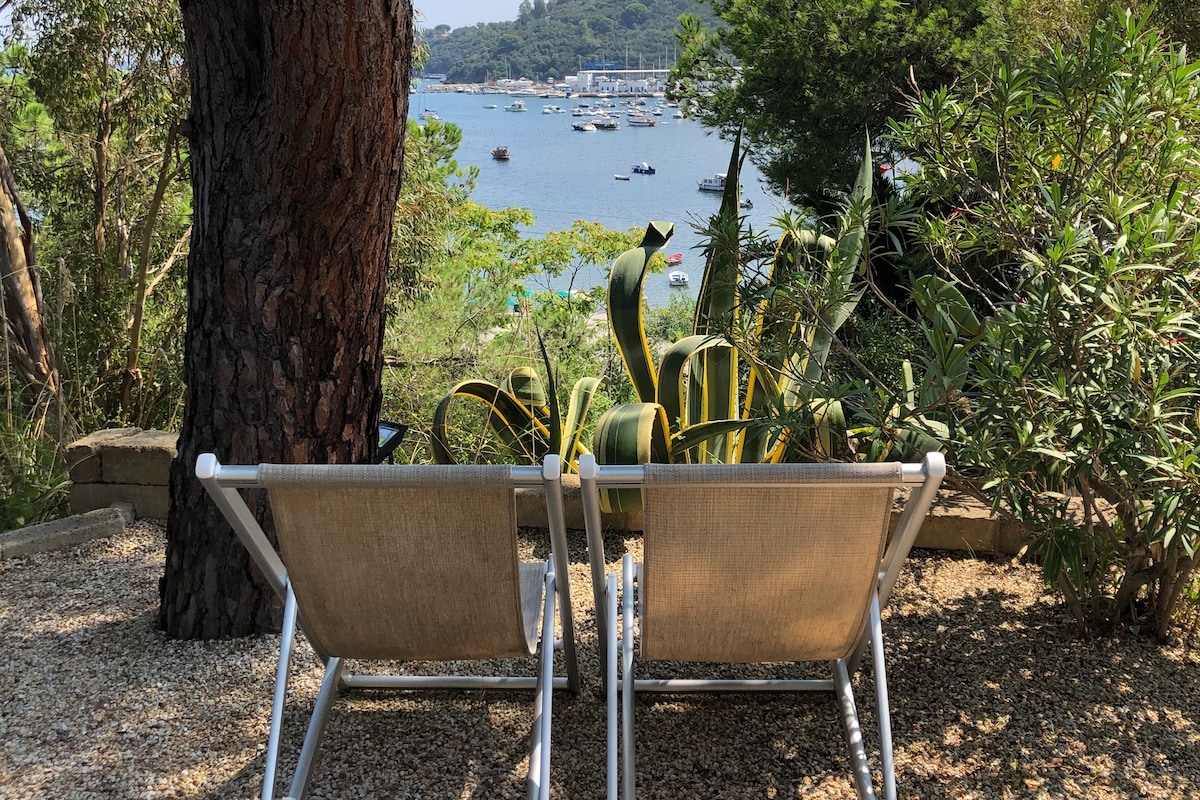 Delizioso appartamento arredato con cura, in stile etnico, provvisto di ogni comfort, in un casolare appena ristrutturato secondo i principi della bioedilizia, immerso nella macchia mediterranea del più bel versante dell'isola d'Elba, con vista mozzafiato sull'arcipelago toscano e sulla Corsica, a 250 m sul livello del mare, dominante la spiaggia di Cavoli. L'appartamento è composto di soggiorno con angolo cottura e divano-letto per due persone, camera matrimoniale e bagno con doccia e ampio spazio esterno attrezzato per pranzare e prendere il sole. Il luogo è raggiungibile con una strada sterrata di 2,5 km dal paesino di San Piero in Campo (fin dove arrivano i mezzi pubblici), distante pochi minuti di macchina dalle spiagge più incantevoli dell'isola (Cavoli, Seccheto, Fetovaia) e dal centro turistico e commerciale di Marina di Campo. E' consigliabile disporre di un mezzo proprio. La casa è immersa nella tipica macchia mediterranea alternata a grandi e suggestive scogliere di granito. Il grande giardino è recintato, contiene un orto e un uliveto. Non vi sono altre abitazioni nei dintorni. Intorno alla località si snodano i più suggestivi sentieri per gli amanti del trekking e della mountain bike. Ideale per chi è in cerca di silenzio, relax, aria pura, e ama la natura e i luoghi un pò speciali. I padroni di casa potranno aiutarvi per ogni evenienza e perplessità. BREATHTAKING VIEW ON THE ARCHIPELAGO Charming apartment,furnished in ethnic style,with every comfort,in an old cottage just renovated according to the bioarchitecture,amidst the Mediterranean bush in the most beautiful part of Elba island with breathtaking views on the Tuscan archipelago and (email hidden) a.s.l.,overlooking famous Cavoli beach. The apartment has a living room with kitchenette and divan bed for two persons,a double bedroom and a bathroom with shower and a large outside patio for eating and sunbathing. You can reach the place through a 2,5 Km dirt road from San Piero in Campo,where pubblic transport ends,and from where ,in few minutes by car you can get to the best beaches of the island (Cavoli,Seccheto,Fetovaia etc.),and to the touristic and service centre of Marina di Campo. It's better to have your own car or motorbike(you can rent it anywhere on the island). The house is surrounded by the typical mediterranean bush scattered with huge granite cliffs. The large garden has an olive grove and a vegetable garden. The place is secluded and there are no other houses in the surroundings. It's an ideal place for trekking and mountain biking and lovers of relax,peace,nature and special places. Your host are ready to help for any need and request.