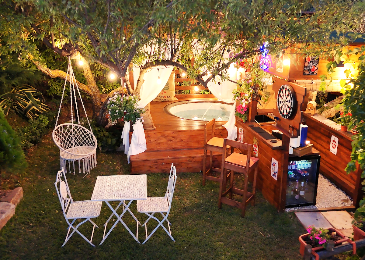 别墅隐匿在绿色植物之中,配备水疗桑拿和烧烤设施