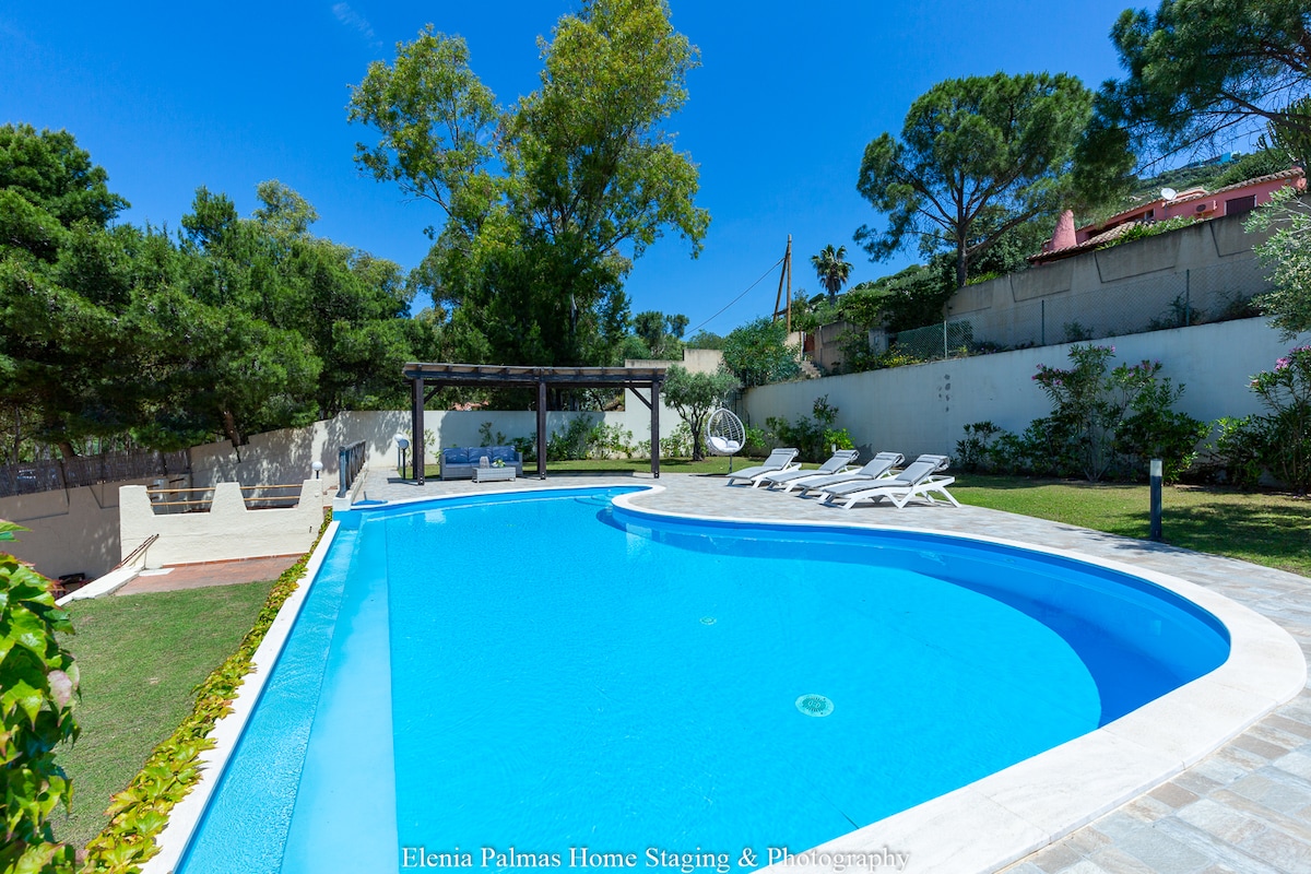 美丽的别墅,花园和迷你游泳池,可以看到大海