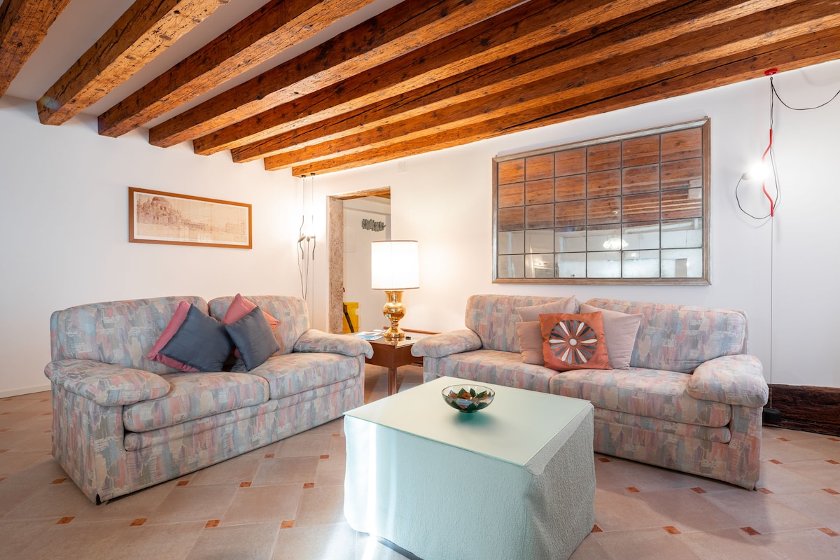 A MUST-SEE 👍 Ca’ degli Antichi Giardini was born from an old brick kiln once used to make traditional bricks. Today it is a modern residence that preserves the charm of the Venetian courtyard, with spaces carefully restored to welcome guests. The standout feature of this apartment is the exposed beam ceiling, creating a warm and cozy atmosphere. The spacious living area with kitchen is perfect to relax and enjoy pleasant moments after a day exploring Venice.