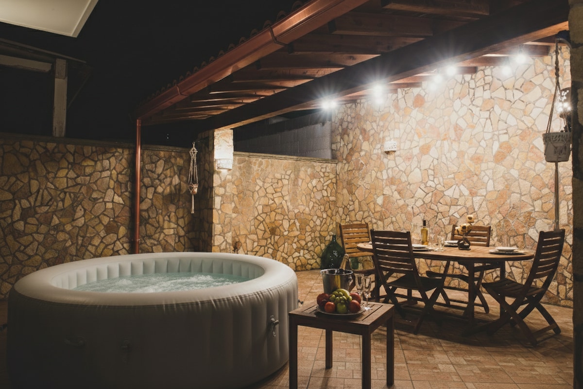 Rural house, pajara, just renovated in the countryside, inside a 10thousand mq olive tree grove with abreath-taking panorama. Nicely furnished,full equipped with air condition, a big outside private pool with hydromassage ( 3.5x11 m) and kitchen area with accessories. The pool is independent, heated all day and night ( 24-28 degrees) and just for the house, the only structure situated in the villa. The wifi is very good also for working inside the house. Only 5km far from famous turist sea-side