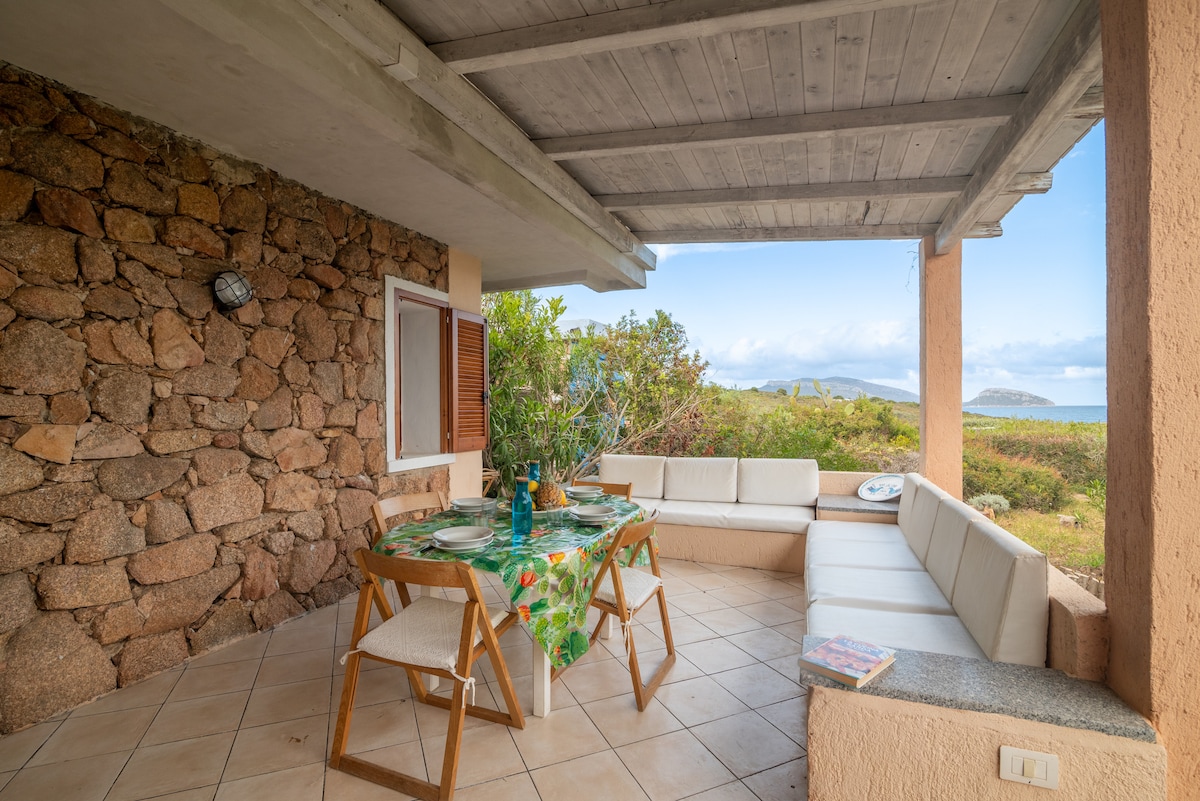 Appartamento al pian terreno con accesso diretto sulla bellissima spiaggia di cala Ginepro, a 20 m. dalla battigia, composto da tre camere da letto, cucina fornita di tutto il necessario, bagno, aria condizionata, lavatrice, internet Wifi, zanzariere in tutte le finestre, giardino privato, tre verande arredate, garage/ripostiglio, barbecue, parcheggio privato e doccia esterna