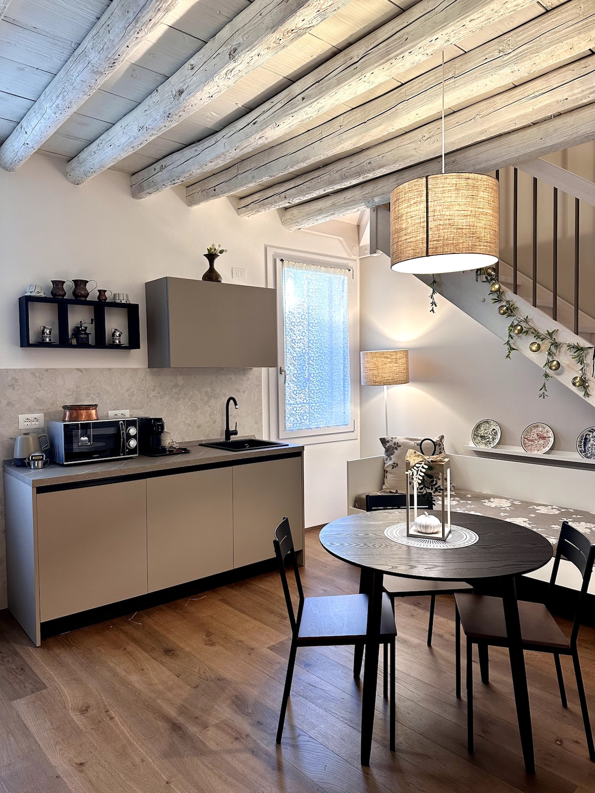 Studio apartment in the historic center equipped with every comfort, from laundry to bicycles. The apartment is located on the first floor of a traditional Venetian house from the early 1900s, completely renovated in 2023. Location close to the Duomo, if you arrive by car you will find the Park Saloni at 400 meters (€4 per day) and the Giove car park at 450 meters (€0.50 per hour). Just 1.5km from the beach, also convenient for going with a public or private boat to Pellestrina.