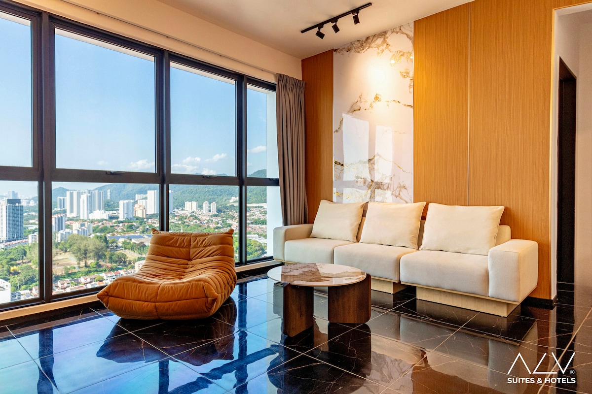 Maritime Suites by Comfy ★ Panoramic Seaview ★ Sunrise view ★ Penang Bridge view ★ High floor ★ 5 stars Superhost Comfy Homestay Team ★ Nearest seaview seaside duplex to UNESCO Heritage Core Zone • 1200 square feet • 1 private car park • 300 Mbps WiFi • 30 restaurants, cafes, pubs, Starbucks, Coffee Bean, FamilyMart, 7-Eleven, HappyMart are below our house. • Fully air-conditioned • Tour Packages are available • 5 to 10 minutes drive to Chew Jetty and UNESCO Heritage old town.