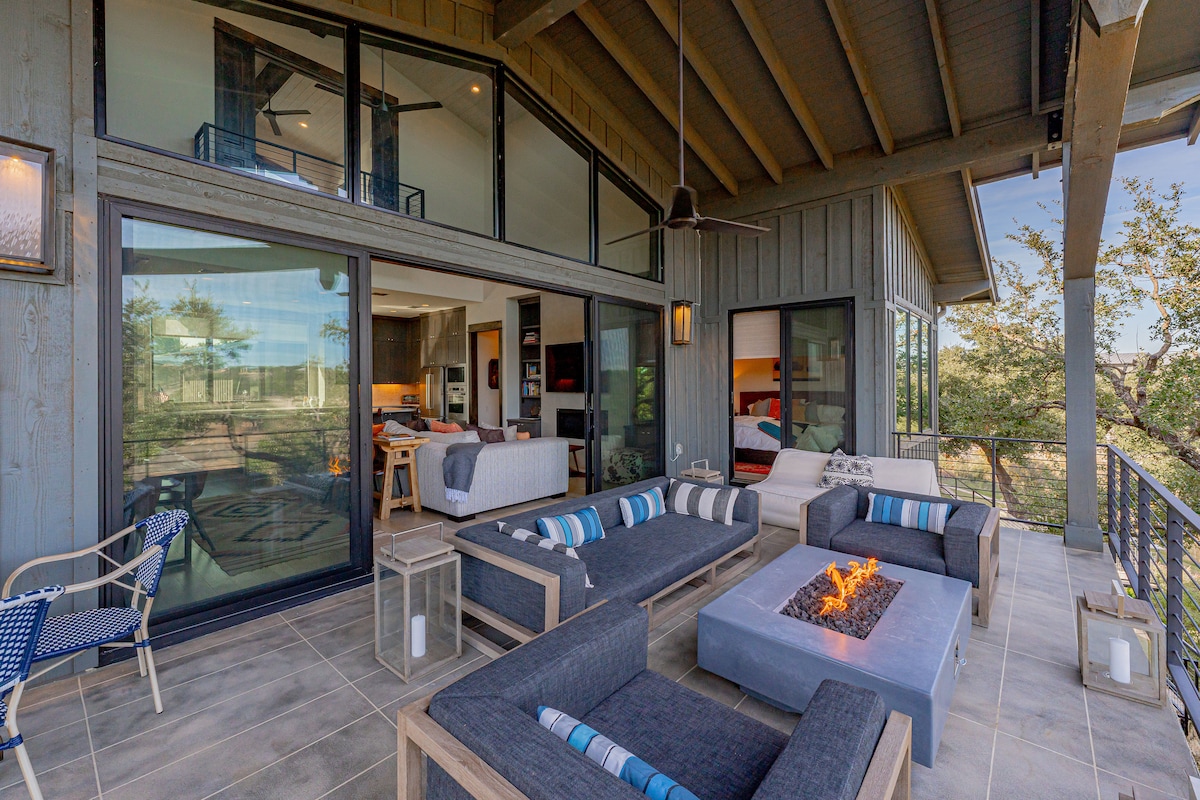 Welcome to our Ranch. Located on 180 Acres in Dripping Springs, the Nook Villa is a Relaxing Luxury Modern Home with all the amenities you could possibly need. Decorated Mid-Century Modern and accented by beautifully restored antique pieces. This home is built around the west-facing picturesque 180-degree stunning views showcased throughout the indoor and outdoor spaces. Relax on the large comfortable sofa, the luxury hot tub, or on the covered porch to take in the beautiful sunsets.