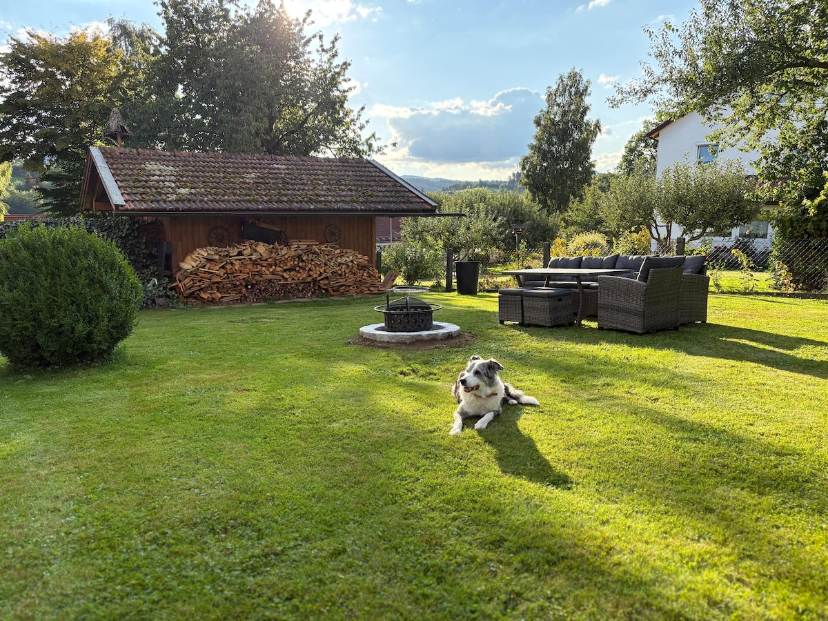 Sie erwartet eine einzigartige Ferienwohnung in absoluter Alleinlage im Bayerischen Wald. Besonders viel Freude werden Sie als Hundebesitzer bei uns haben. Auf unserer fast 1500qm großen eingezäunten Hundewiese kann sich Ihr Fellfreund austoben. Auf dem großen Holzbalkon haben Sie freien Blick auf den Sonnenaufgang und auf die Hundewiese. Im Wohnbereich ist ein Kamin, eine Küche und in der großen Badewanne können Sie abends entspannen. Von Mitte/Ende November bis April nur mit Allrad erreichbar!