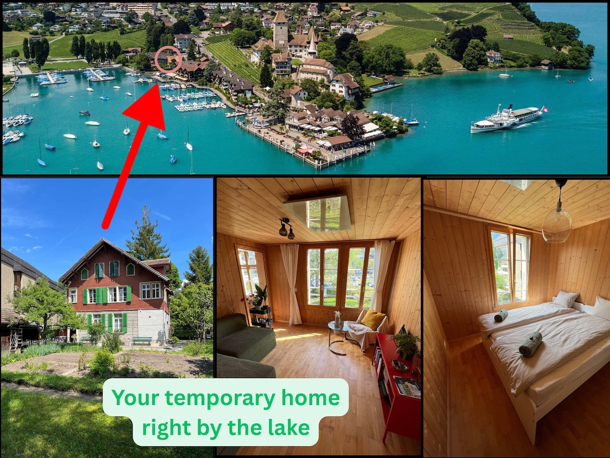 Our beautiful home is located right above the harbor of the lovely village of Spiez. Near the house lies a quiet park through which the train station and the local town can be reached within 5 walking minutes. The harbor with access to the lake and different restaurants is also very close and only a few minutes away. There are so many things to do in the region - and Spiez is the ideal spot to start! Interlaken with all its activities is reachable by train in not more than 20 min.