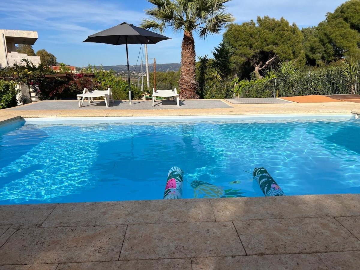 Cozy cottage-style detached house in Artemida, Attica, just 20 meters from the sea, located in a quiet and family-friendly area. The spacious outdoor space with a large dining table and BBQ is perfect for relaxed family meals and quality time together. With a 3' walkfrom our house you’ll find one of the area’s best seafood taverns, while a fully organized beach bar with sunbeds and amenities is only 150 meters away, ideal for both children and adults.