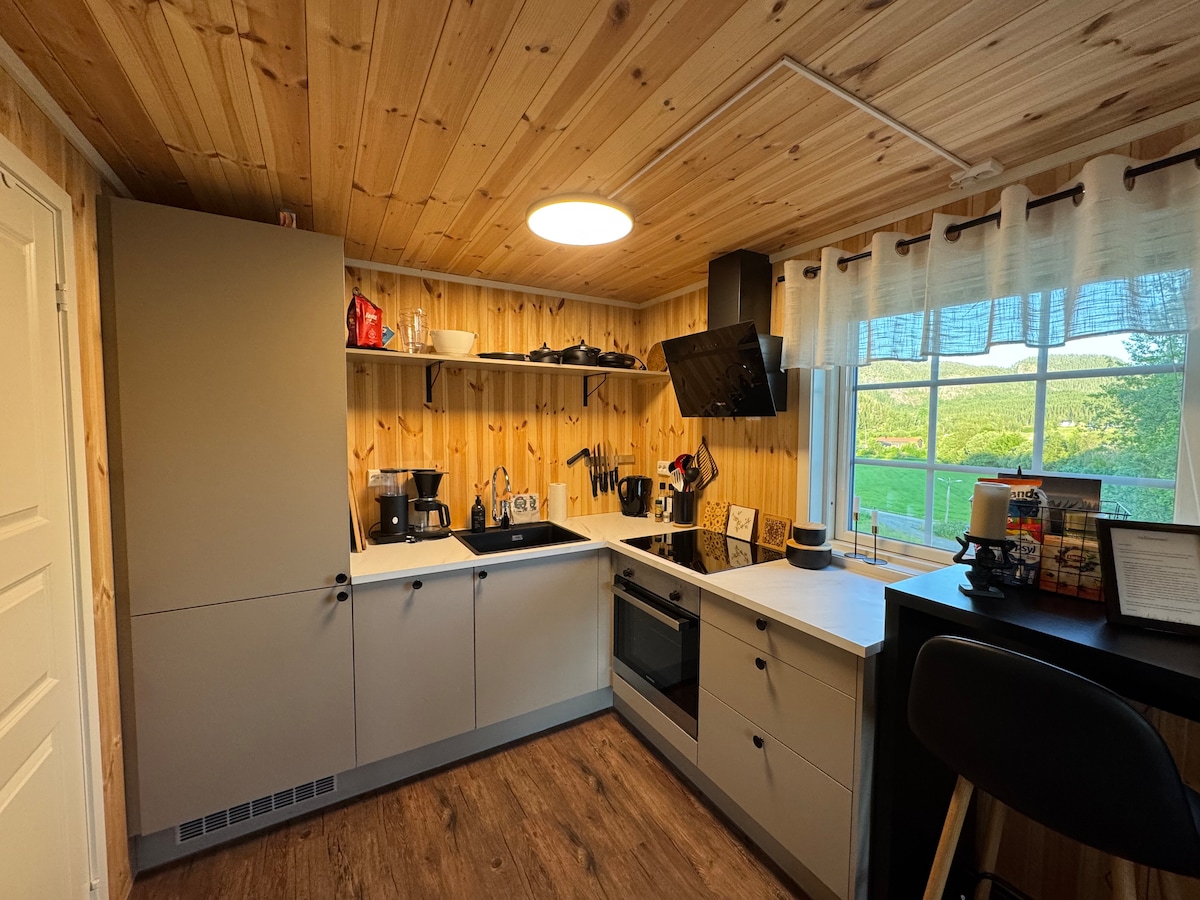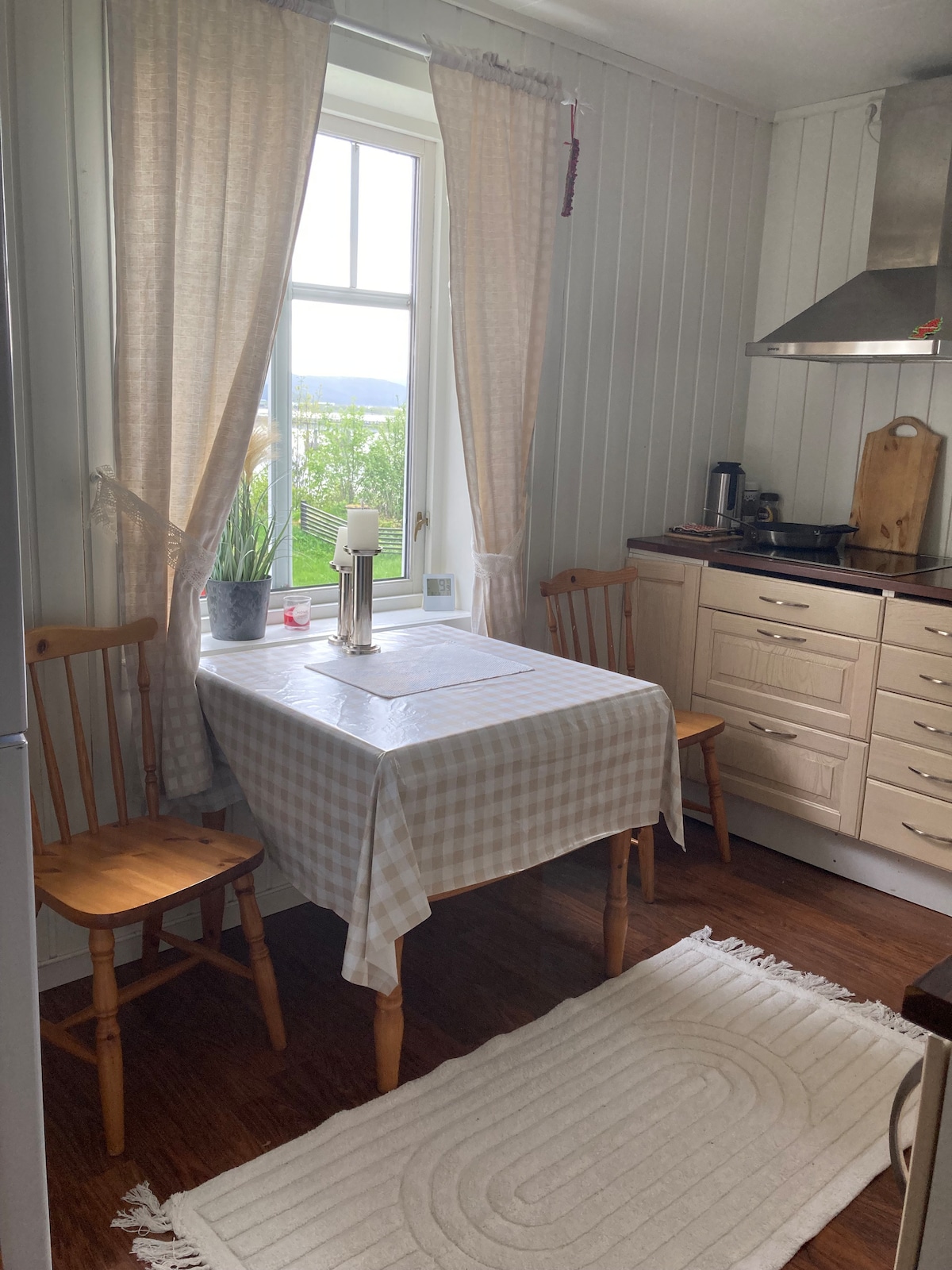 Ferdig oppreide senger og gratis sluttrengjøring. 96 m2 stort hus med stor terrasse, grill og nydelig utsikt. Terrassemøbler. 3 soverom. Fantastiske solforhold. Ligger på gård i drift med melkeproduksjon. Parkering rett utenfor dør. Rullestolrampe, alt på et plan. Muligheter for å se både nordlys, elg og rådyr fra terrassen. Smart-Tv og internett inkl.,Sprinkelseng og stellebord. Nært skog, turmuligheter og skiløyper. Laksefiske og småviltjakt i nærheten. Egen ladekabel bil må medbringes.
