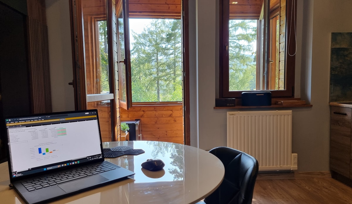 BOOK 7 NIGHTS and PAY ONLY for 6 - 15% discount for whole week stays Panorama Lofts Pec offers stunning mountain views thanks to huge format glass walls that make you feel part of the surrounding. This new building is one of the architectural highlights of the town. It is perfectly located between the center and the major ski slopes. Both within close walking distance. Hit the slopes directly on skis or one stop by skibus that stops right behind the house.The town center it is just 5 min. walk