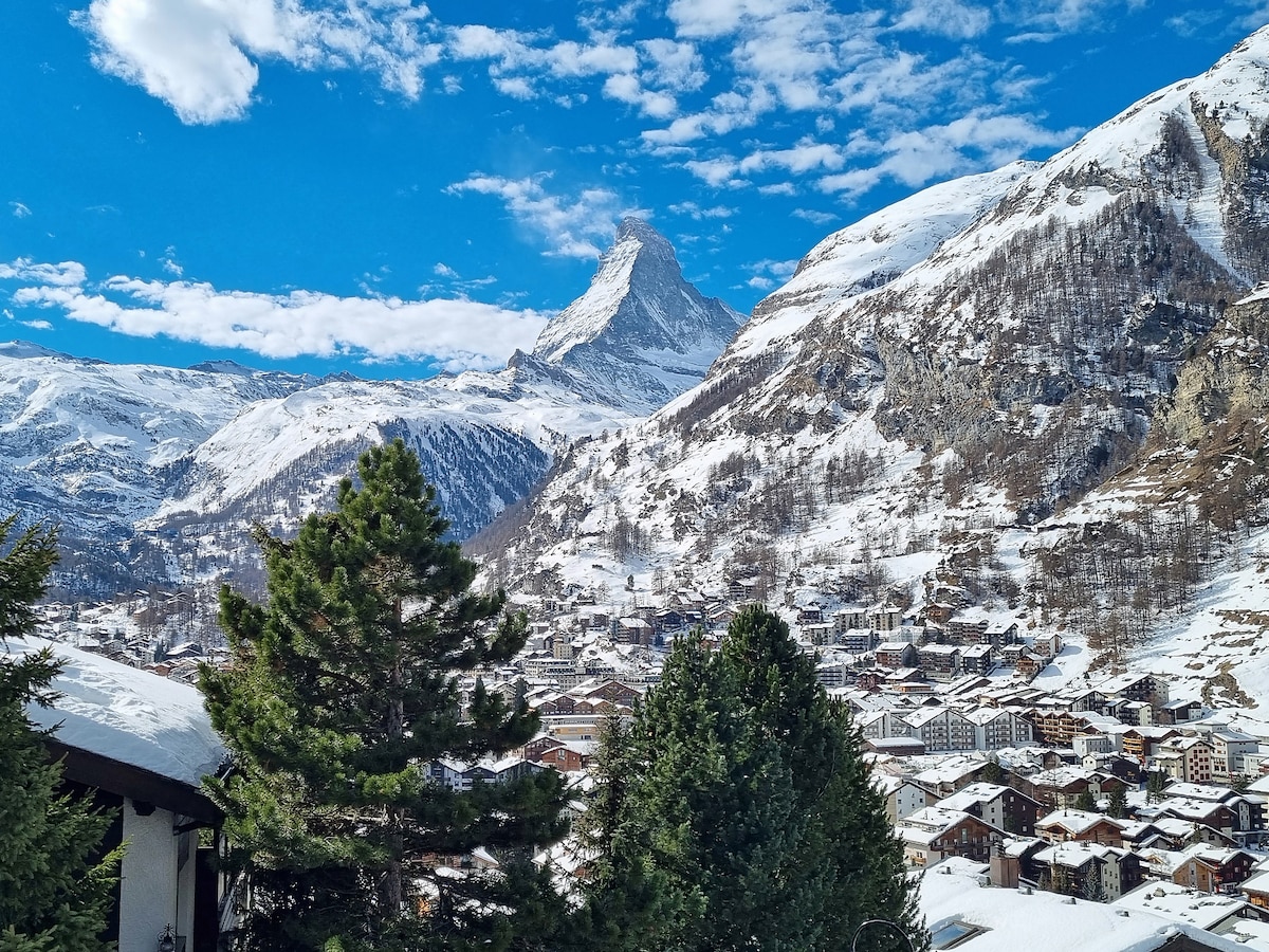 Warm, comfortable apartment close to center/station/ski, very light, with stunning view of the Matterhorn. Full view from bedroom, living-room and of course large balcony. Modern equipment : secure wifi, 2 big flat screen tv's, dock bose, etc..