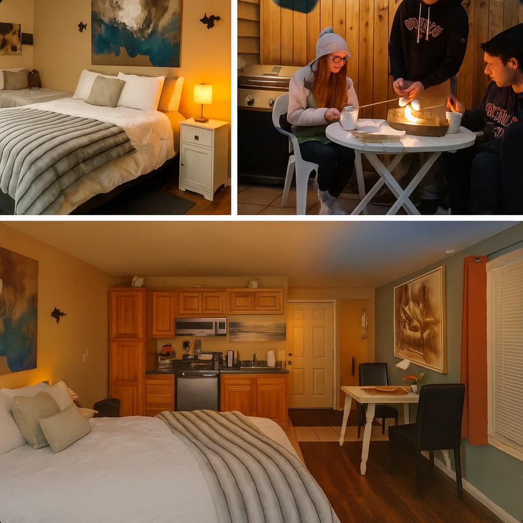 Our cozy horse themed 2 bed, 3 person studio is completely private, so you can come and go with ease. Private bathroom. Dining area 😄Lots of snacks included. 😋🍿 Keurig coffee bar☕️ Many options to cook your own food.🍳with Yokes Fresh Market just a minute away. 🛒 Inside: Roku TV for your enjoyment.📺 Board Games to play, books. Outside: Horseshoes, Super Mini Golf Course, Corn Hole, 🔥Table Top Fire Pit, BBQ. 🔥Special packages for getaways. Laundry services available at request.🧺
