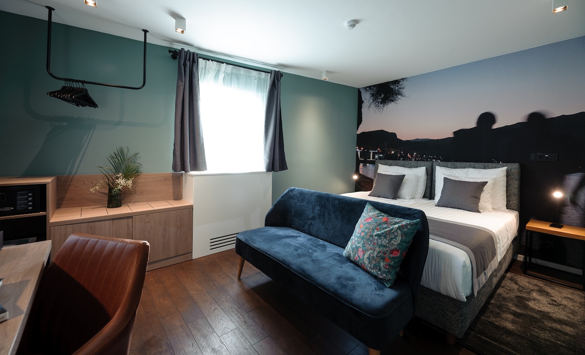 Suite King Bed + Sofa Bed with city view BB Room for one or two or three guests Plaza Marchi Old Town - MAG Quaint & Elegant Boutique Hotels The room includes;air-condition,sound-proof, featuring designer furniture and amenities such as a mini-bar, safe deposit box, double anatomic mattresses, work desk, LCD satellite TV, and free Wi-Fi. Bathrooms have a rain shower, hair dryer, toiletries and designer ceramic tiles Charging cables for different types of mobile phones and 2 types of sockets.