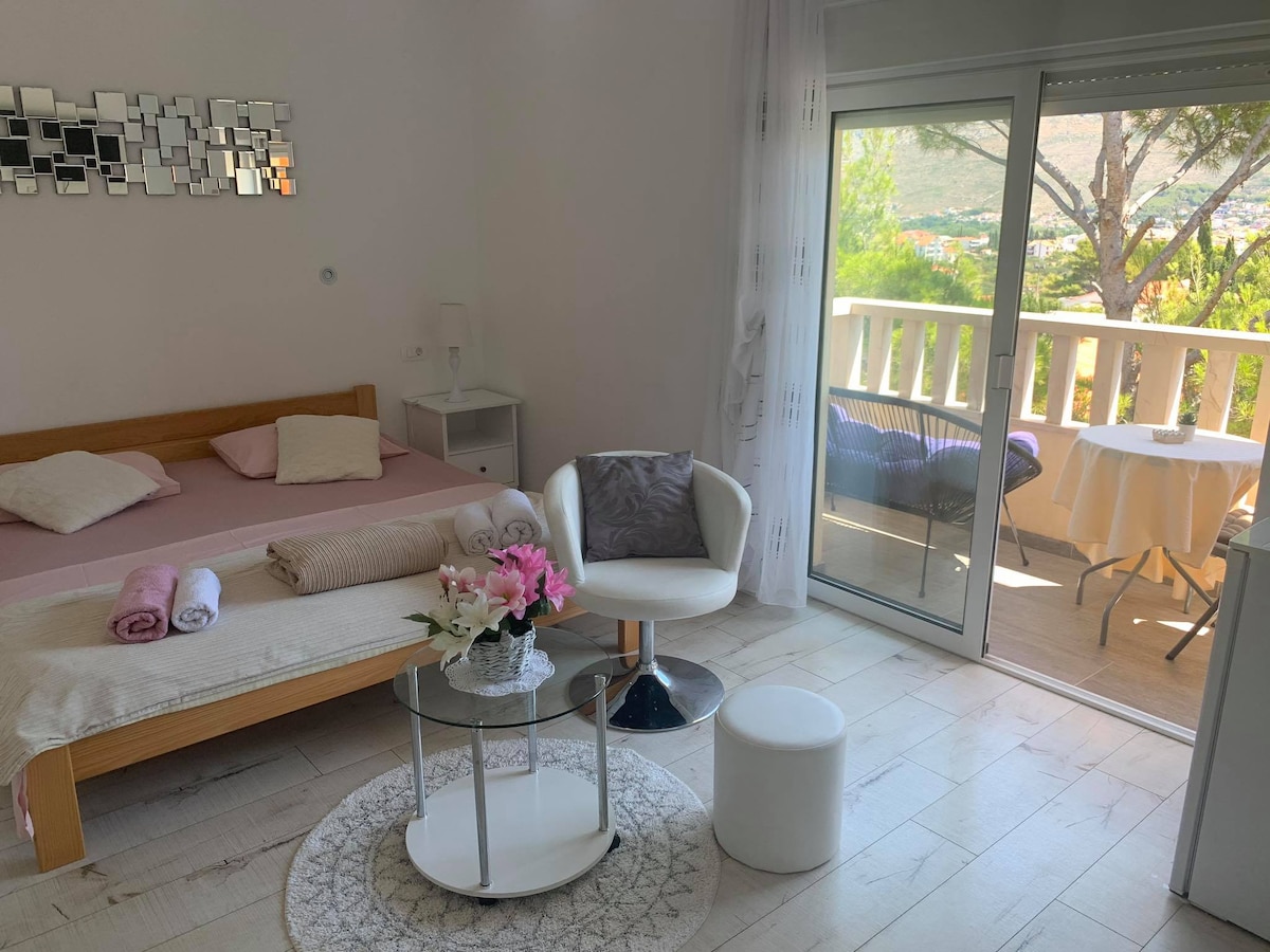 Enjoy your stay in studio apartment "Sanimar" for 2 persons . It's only 3 minutes walking distance from the Bačvice beach and 5 minutes from the Diocletian's palace. It's equipped with everything You need for pleasent stay - air conditioning, cable TV, free Wi-Fi, kitchen... The bonus is a beautiful large terrace with a view on the backyard, where you can relax undisturbed. Only few steps away from the apartment, there is a big grocery store and street workout park.