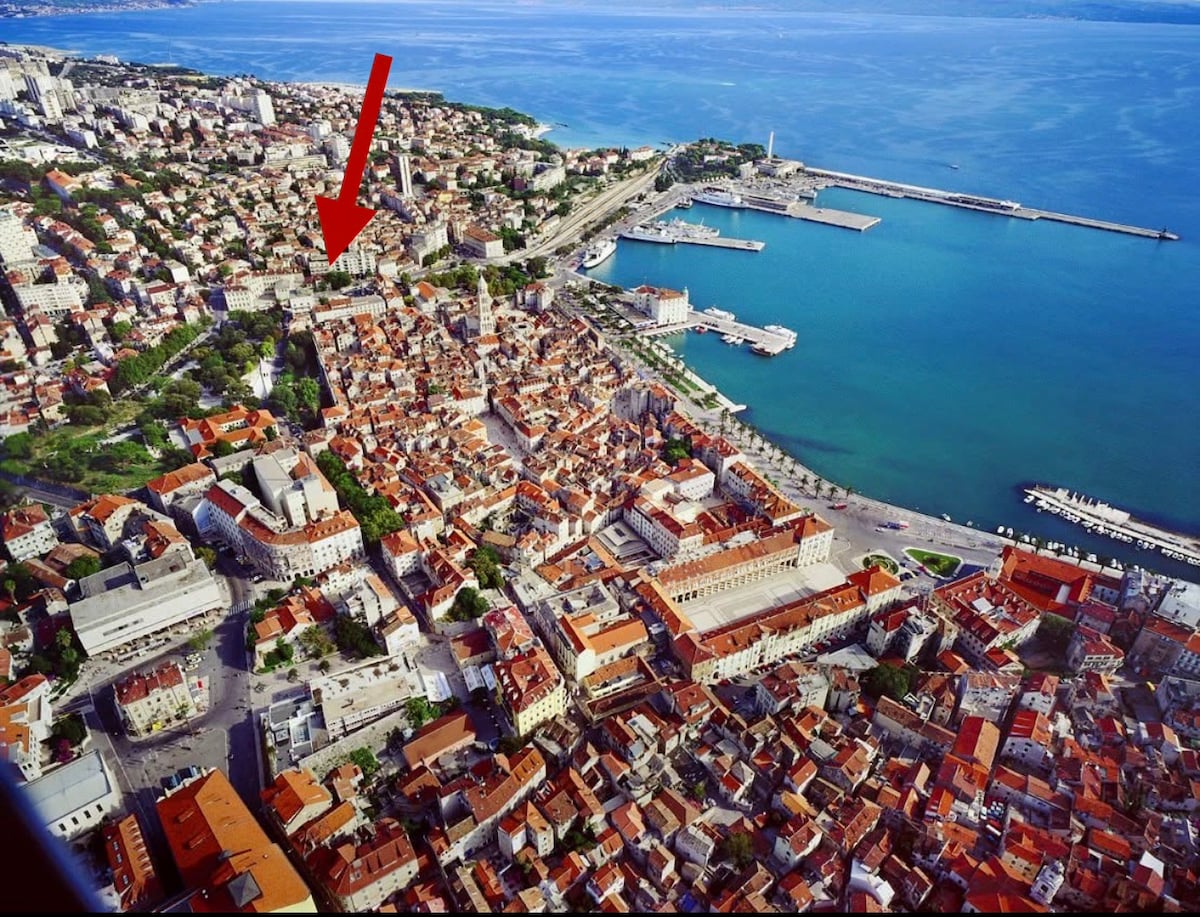 Located in the center of the city, on the edge of the pedestrian zone, in a quiet and peaceful street, 350meters from Diocletians palace, Cathedrale of St.Duje. Distance from the waterfront”RIVA”-main promenade in Split is 450 meters with many cafes, taverns, clubs and restorants, bank, ATM, many cultural events…. Perfect sightseeing homebase. See Diocletian's palace, Marjan hill,Split's city beaches Fwe minutes walk to the ferry port, train, main bus station, 1000meters to the ULTRA EUROPE