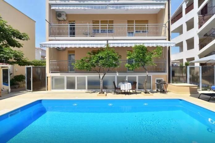 The modernly furnished apartment has a room with a separate air conditioning, TV and modern lighting. The kitchen is equipped with dishwasher, ceramic plate, microwave and all the equipment. The living room has sofas for a third person and its tv and air conditioning. The apartment has a beautiful terrace overlooking the sea, ancient Salon and Split. Guests can use our swimming pool and barbecue in the garden.