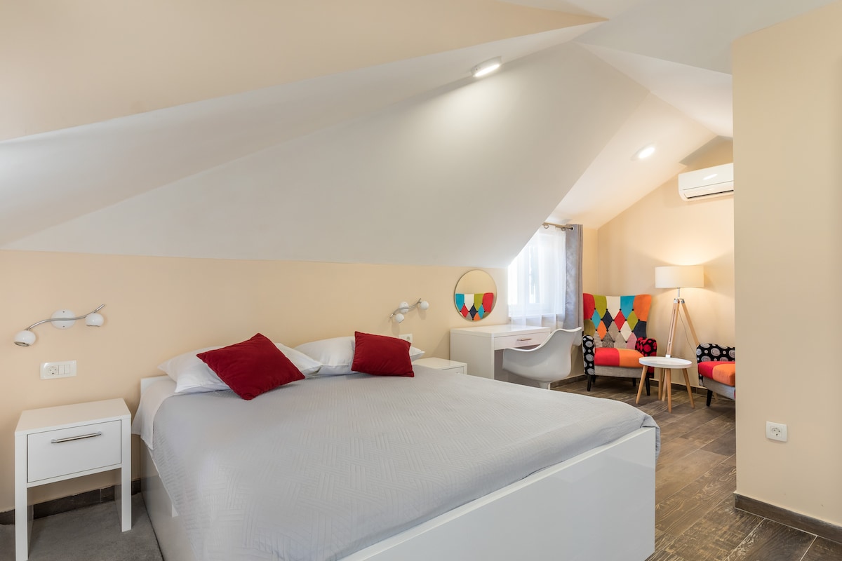 Villa Split Art - apartments and rooms located near Dioklecian Palace (UNESCO) in a quite area Radunica. Our house is designed by an artist. It is close to the center of city Split, just 5 minutes from the harbor, bus station, beach... Apartment Pistacio is good option to rent it for " Work from home" . Good wifi connection.