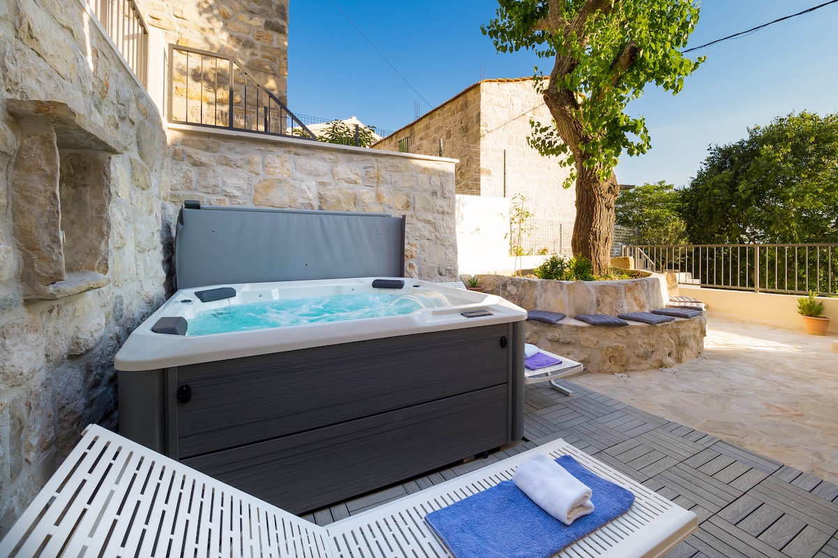 Opustite se s obitelji ili s prijateljima u ovoj renoviranoj i moderno opremljenoj kamenoj kući u Gornjoj Podstrani pokraj Splita. Kuća je renovirana 2022 godine. Uživajte u fantastičnom pogledu na Split, Dalmatinske otoke i Jadransko more. Šetajte se po okolnim brdima ili vozite e-biciklu te se potom opustite u velikom jacuzziju pokraj najstarije kamene kuće u selu. Na jednoj od četiri terase provodite vrijeme čitajući, slušajući ptice, razmišljajući o povijesti koja vas okružuje ili čaši vina.