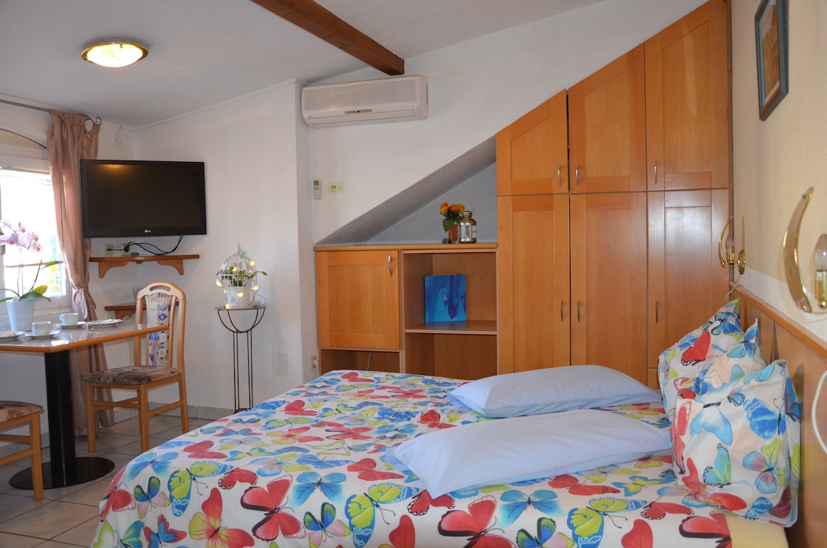 Modern furnished 25 m2 double room for couples (on the first floor). The double room has one double bed, the corresponding mini kitchen and a private bathroom. There is the possibility of renting additional folding bed for a third person. We offer you two such identical double room each with separate entrance.