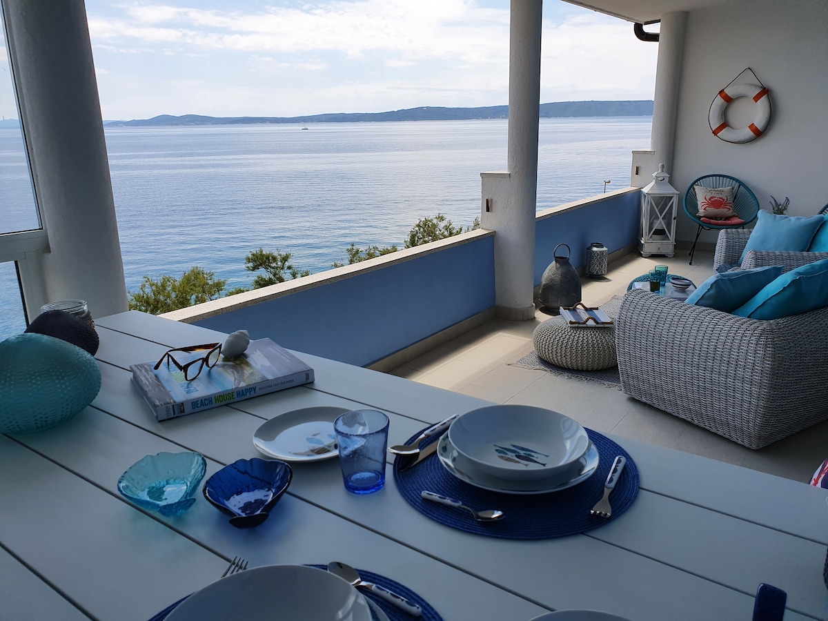 Our spacious, airy, modern two bedroomed apartment with stunning sea views from both air-con bedrooms, a large terrace to savour delights from sunrise to sunset. Unimaginable, private entrance, kitchen, 2 bathrooms, lounge, tv, wi-fi, store room An amazing sea front location of a private apartment (2nd floor) overlooking & with easy access to the Pristine waters of the Adriatic Sea.
