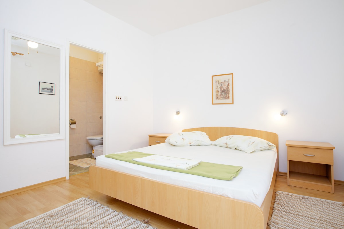 This apartment was freshly renovated in 2025. Spacious and cozy apartment with a lovely sea view balcony. It is placed on the third floor of our family house, “Veli Bok”. The apartment consists of an entrance hall, bathroom, studio area (kitchen, dining area, sleeping area, and living room area), and a balcony. Ideal for a couple or small family with one or two small kids. Our house is located 20/25 minutes' walk from the harbour/main square, which is 1,5 km/2 km away.